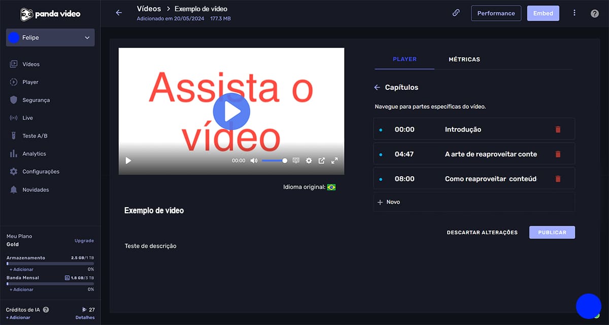 É possível gerar quizzes, e-books e mapas mentais com inteligência artificial na Panda Video.