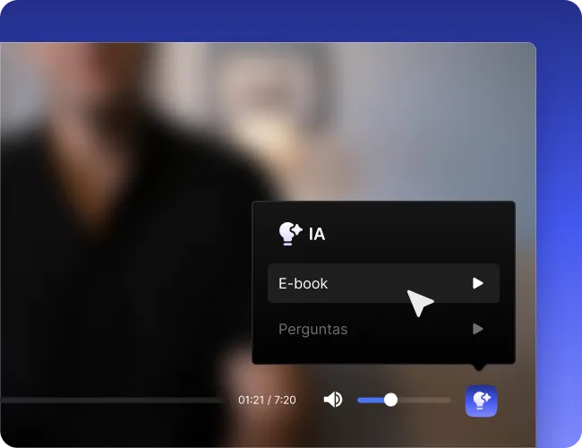 Complementar o vídeo com outros materiais aumenta comprovadamente a retenção das aulas.Uma boa hospedagem de vídeos oferece recursos que te permite criar: