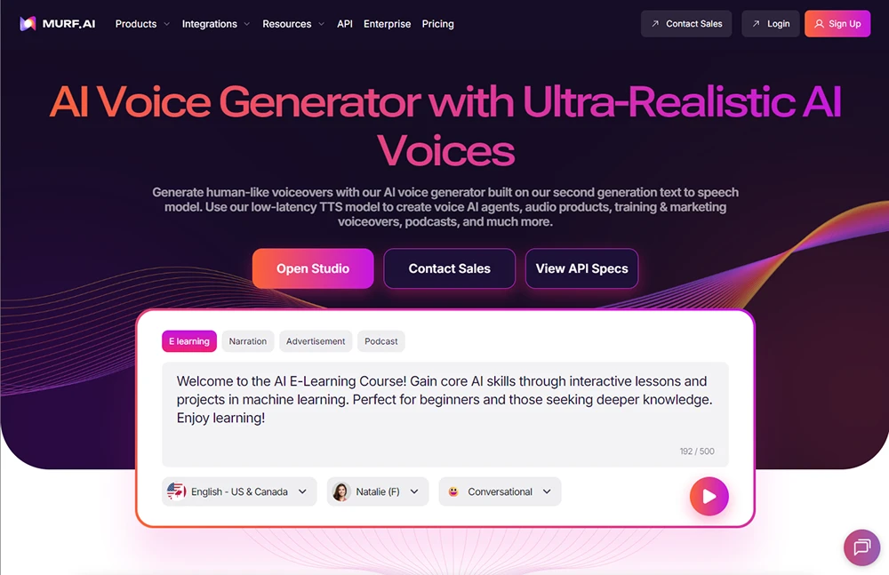 Murf.ai es una plataforma pensada para quienes buscan crear narraciones profesionales de forma práctica. Es utilizada por empresas, educadores y creadores digitales para dar voz a videos, presentaciones y cursos, ofreciendo más de 200 voces en 20 idiomas y acentos.