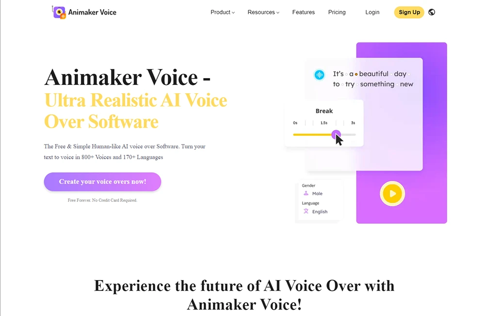 Animaker Voice es una herramienta de voz con IA en línea, diseñada para transformar textos en narraciones humanas de forma rápida y accesible. Con más de 800 voces en 170 idiomas, es ideal para quienes quieren crear locuciones para videos de marketing y redes sociales sin necesidad de equipos profesionales.