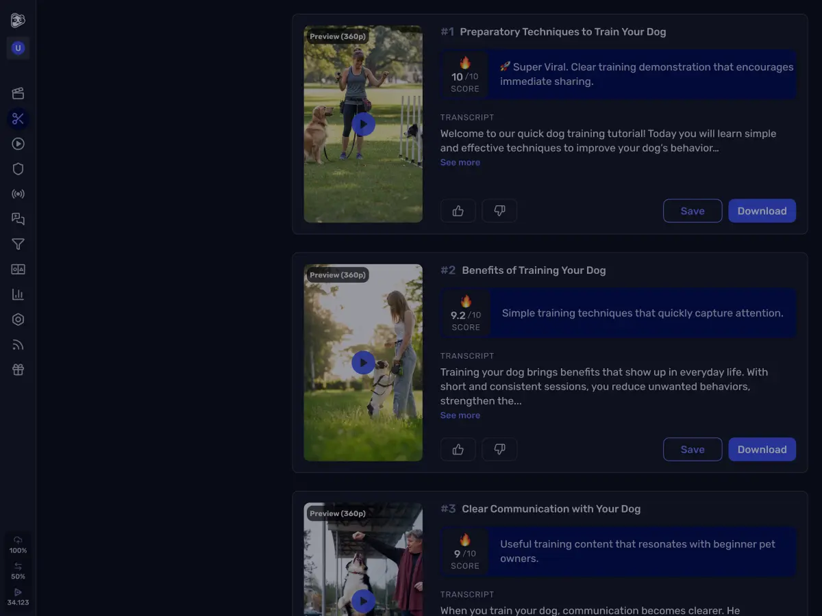 Our AI analyzes context to automatically extract the moments with the highest potential for shares and engagement.